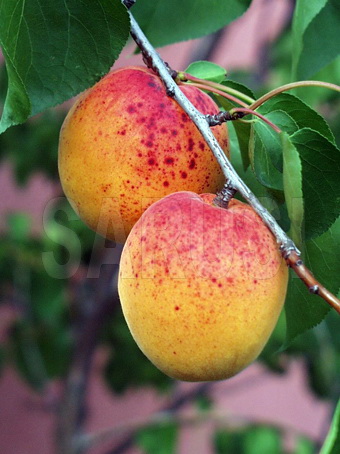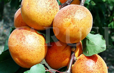 Fructele sunt mijlocii spre mare (45 - 50 gr), formă ovoidă, culoare portocalie cu roșu carmin pe partea însorită, cu aromă bună.